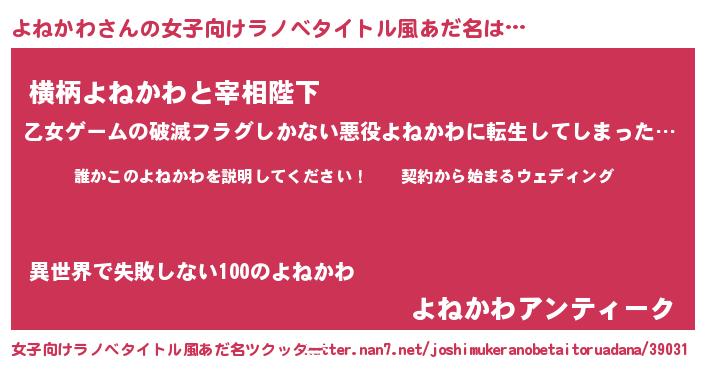 | 男性向けラノベタイトル風あだ名 | 『ヨネカワアートオンライン』 |