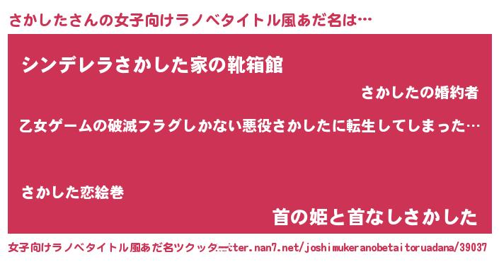 | 男性向けラノベタイトル風あだ名 | 『この素晴らしい世界にさかしたを!』 |