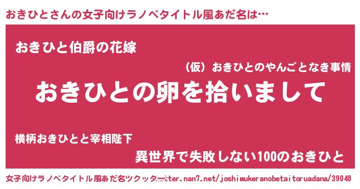 | ヒーロー風カッコイイあだ名 | 『銀牙騎士オキ』『ウルトラおきひとマン』 |
