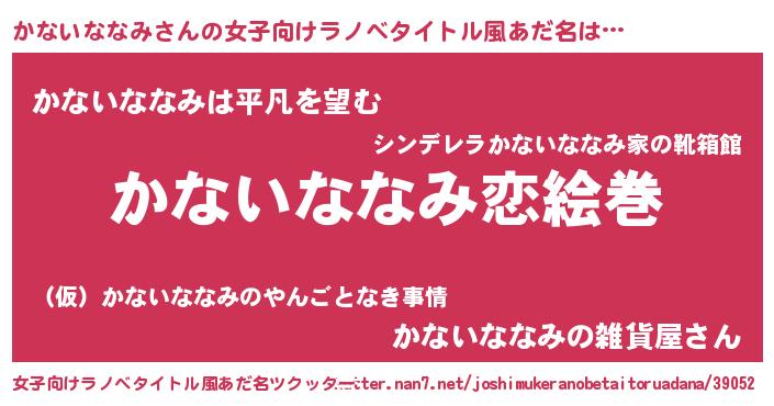 | 胡散臭い通販商品みたいなあだ名 | 『お金では代えられない隕石のかけら…その名も「かないななみ」』 |