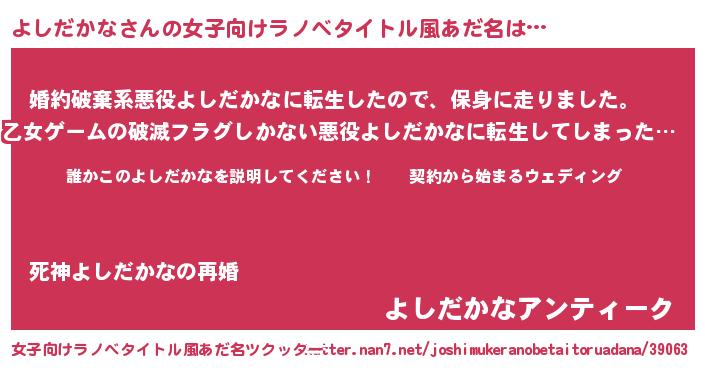 | 男性向けラノベタイトル風あだ名 | 『ヨシダカナアートオンライン』 |