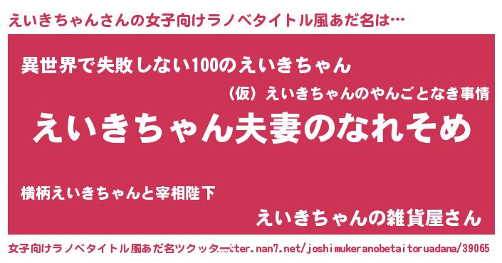 | 男性向けラノベタイトル風あだ名 | 『おまえをオタクにしてやるから、俺をえいきちゃんにしてくれ! 』 |