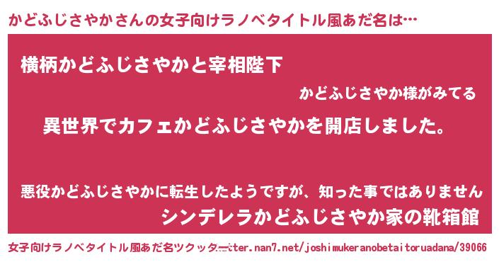 | 胡散臭い通販商品みたいなあだ名 | 『前代未聞の水素水…その名も「かどふじさやか」』 |