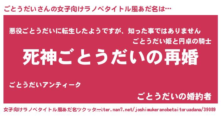 | 男性向けラノベタイトル風あだ名 | 『ノーゲーム・ノーゴトウダイ』 |