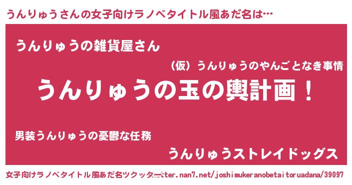 | ヒーロー風カッコイイあだ名 | 『ウルトラうんりゅうマン』 |