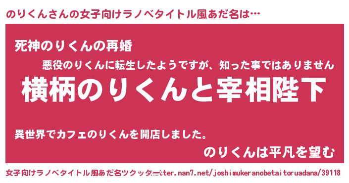 | 男性向けラノベタイトル風あだ名 | 『のりくんに滅ぼされるだけの簡単なお仕事です』 |