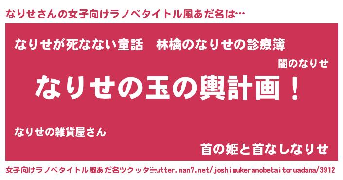 | 意味不明あだ名 | 『ヨモギ科なりせ属』『自称なりせ』 |