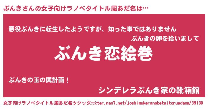 | 男性向けラノベタイトル風あだ名 | 『おまえをオタクにしてやるから、俺をぶんきにしてくれ! 』 |