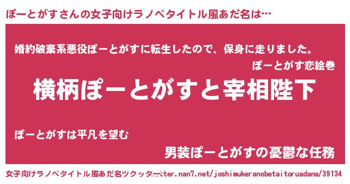 | 男性向けラノベタイトル風あだ名 | 『ぽーとがすに滅ぼされるだけの簡単なお仕事です』 |