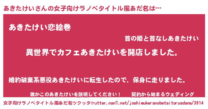 | 意味不明あだ名 | 『永久保存あきたけい』 |