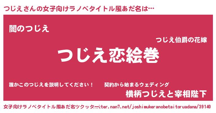 | 男性向けラノベタイトル風あだ名 | 『おまえをオタクにしてやるから、俺をつじえにしてくれ! 』 |