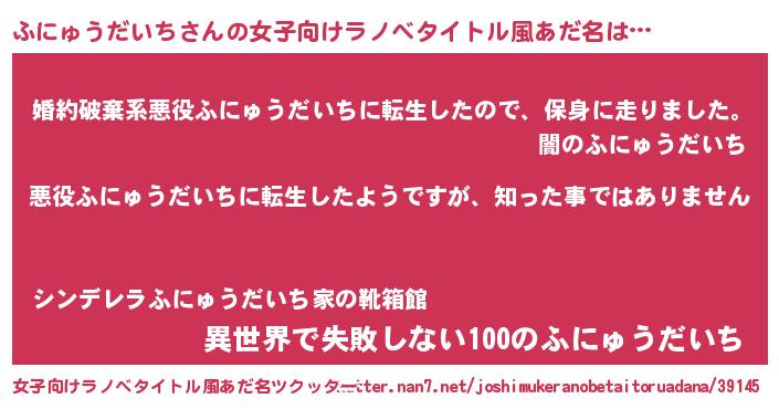 | 胡散臭い通販商品みたいなあだ名 | 『あなたにだけ特別に提供する100年もののヴィンテージワイン…その名も「ふにゅうだいち」』 |