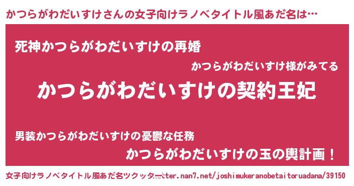 | 男性向けラノベタイトル風あだ名 | 『誰もが恐れるあのかつらがわだいすけが、ぼくの専属メイドになるようです。』 |