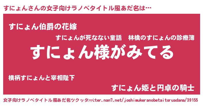 | 男性向けラノベタイトル風あだ名 | 『すにょんの嫁は女の子じゃないと思った?』 |