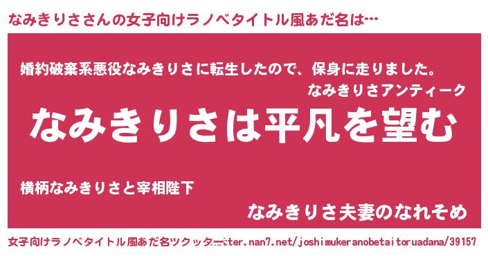| ヒーロー風カッコイイあだ名 | 『黄金騎士ナミ』『正義の使者なみきりさ』 |