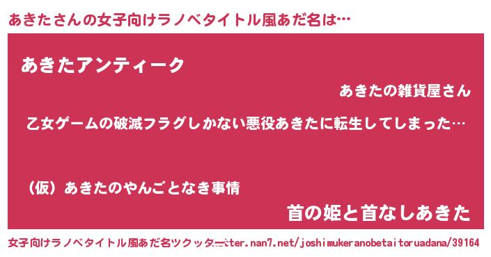 | 胡散臭い通販商品みたいなあだ名 | 『世界中を虜にした世界で10本だけ現存している希少なブランデー…その名も「あきた」』 |