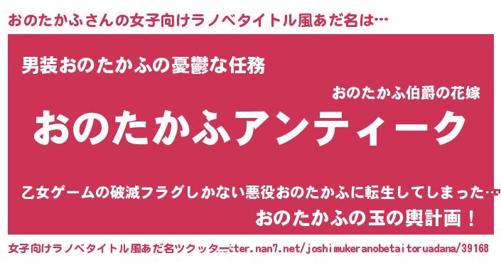 | 欧米人風あだ名 | 『ケンブリッジおのたかふ』 |