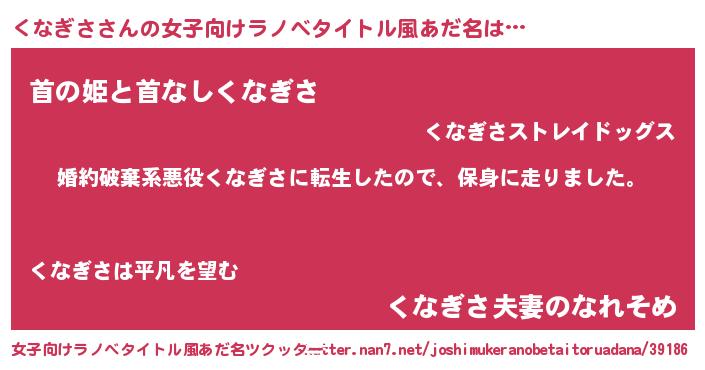 | 意味不明あだ名 | 『なめこ科くなぎさ属』『自称くなぎさ』 |