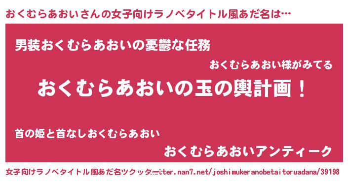 | ヘコむあだ名 | 『おくを』『おくむらあおい(笑)』 |