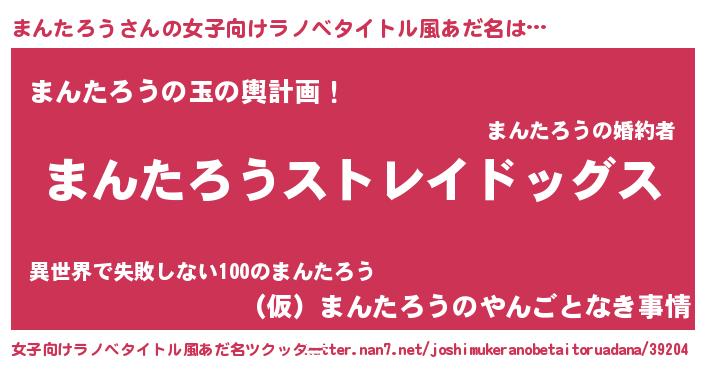 | 男性向けラノベタイトル風あだ名 | 『Re:まんたろうから始める異世界生活』 |