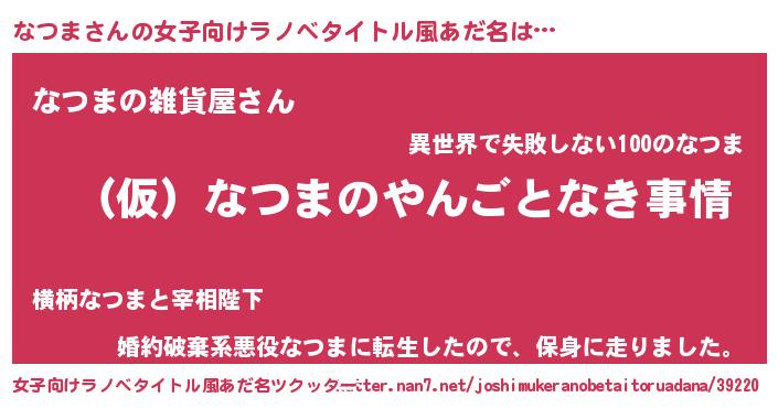 | 男性向けラノベタイトル風あだ名 | 『なつまの憂鬱』『ナツマスレイヤー』 |