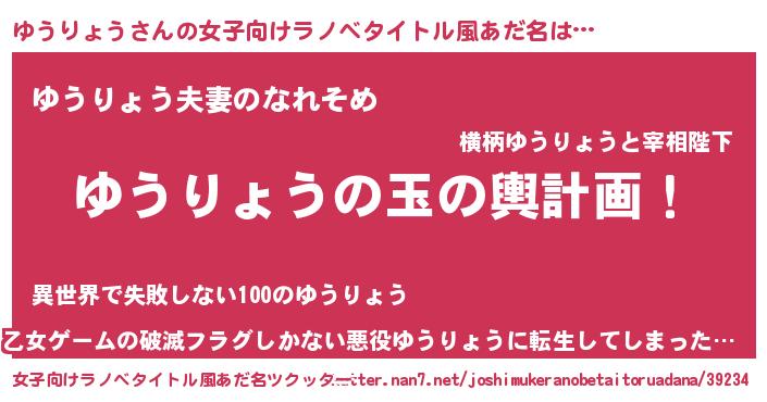 | 男性向けラノベタイトル風あだ名 | 『転生したらゆうりょうだった件』 |