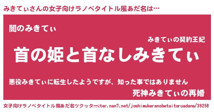 | 胡散臭い通販商品みたいなあだ名 | 『ガンによく効くアガリクス…その名も「みきてぃ」』 |
