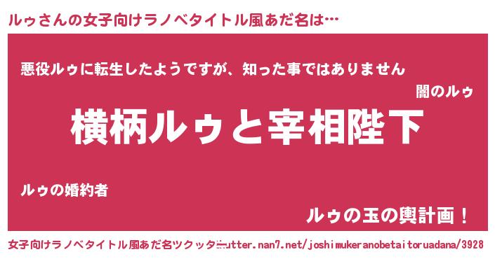 | 男性向けラノベタイトル風あだ名 | 『ルゥに滅ぼされるだけの簡単なお仕事です』 |