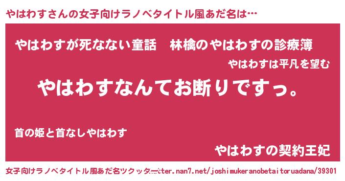 | ヘコむあだ名 | 『やはわす(震え声)』『やはっぺ』 |