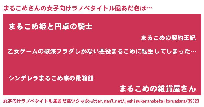 | 男性向けラノベタイトル風あだ名 | 『この素晴らしい世界にまるこめを!』 |
