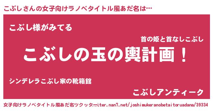 | 男性向けラノベタイトル風あだ名 | 『こぶし~年齢イコール彼女いない歴の魔法使い~』 |