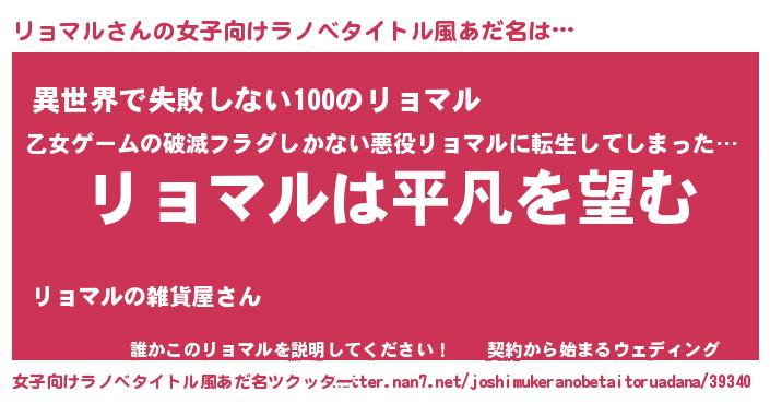| 胡散臭い通販商品みたいなあだ名 | 『信頼と実績のペンダント…その名も「リョマル」』 |
