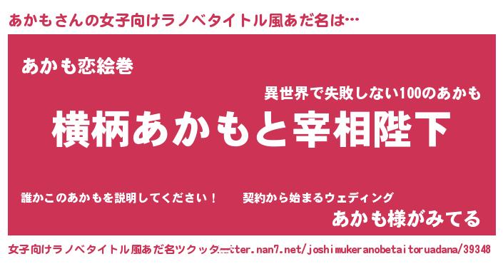 | 男性向けラノベタイトル風あだ名 | 『あかもに滅ぼされるだけの簡単なお仕事です』 |