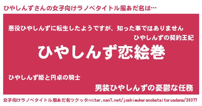 | ヘコむあだ名 | 『ひやしんず(苦笑)』『ひやもー』 |