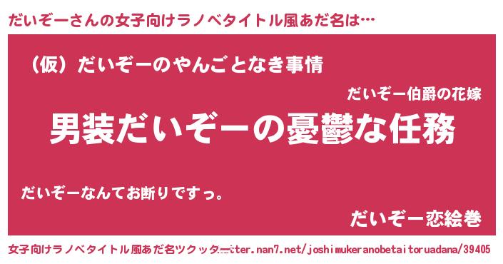 | 意味不明あだ名 | 『ペロリンだいぞー』『自称だいぞー』 |