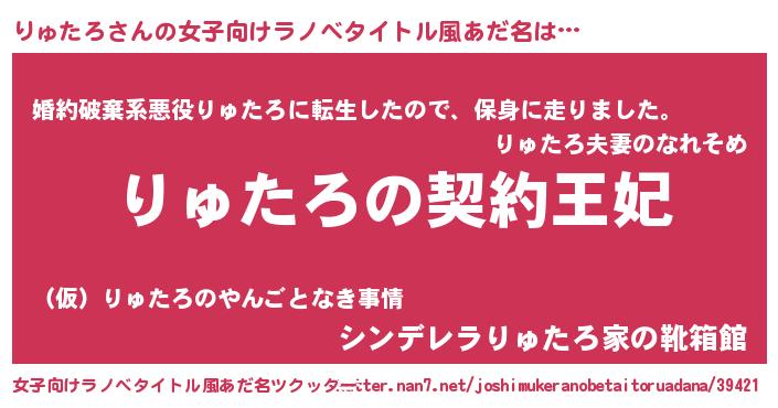 | 意味不明あだ名 | 『永久保存りゅたろ』『ペロリンりゅたろ』 |
