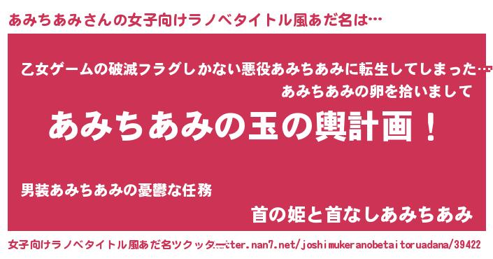 | 胡散臭い通販商品みたいなあだ名 | 『世界中を虜にした世界で10本だけ現存している希少なブランデー…その名も「あみちあみ」』 |