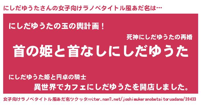 | 男性向けラノベタイトル風あだ名 | 『はたらくにしだゆうたさま!』 |