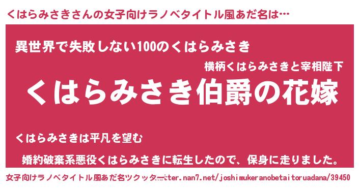 | ファンタジー風あだ名 | 『エターナルクハラミサキー』 |