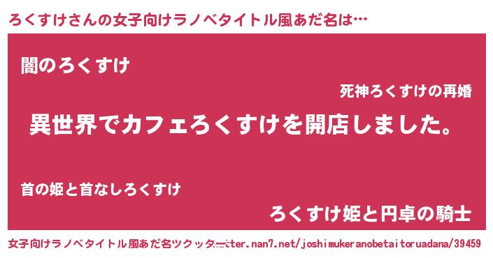 | 男性向けラノベタイトル風あだ名 | 『誰もが恐れるあのろくすけが、ぼくの専属メイドになるようです。』 |