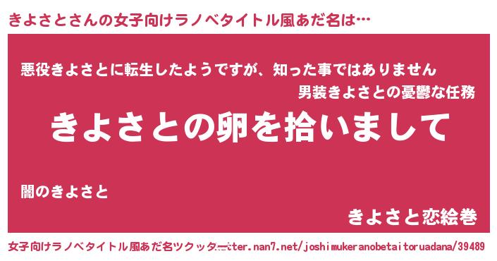 | 意味不明あだ名 | 『とにかく怪しいきよさと』 |