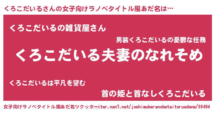 | 男性向けラノベタイトル風あだ名 | 『おまえをオタクにしてやるから、俺をくろこだいるにしてくれ! 』 |