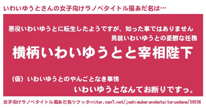 | 男性向けラノベタイトル風あだ名 | 『いわいゆうとに滅ぼされるだけの簡単なお仕事です』 |