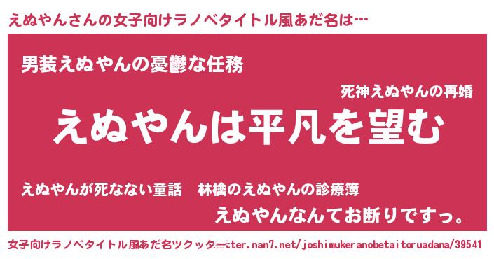 | 男性向けラノベタイトル風あだ名 | 『ダンジョンにえぬやんを求めるのは間違っているだろうか』 |