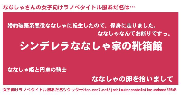 | 胡散臭い通販商品みたいなあだ名 | 『信頼と実績のネックレス…その名も「ななしゃ」』 |