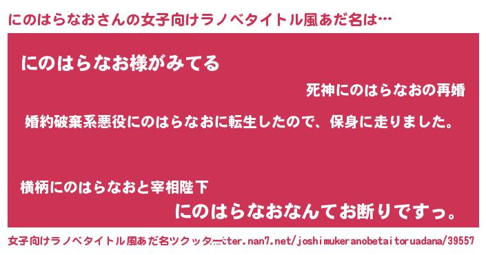 | 男性向けラノベタイトル風あだ名 | 『転生したらにのはらなおだった件』 |