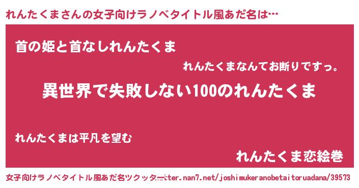 | 男性向けラノベタイトル風あだ名 | 『れんたくまという概念が存在しない退屈な世界 』 |