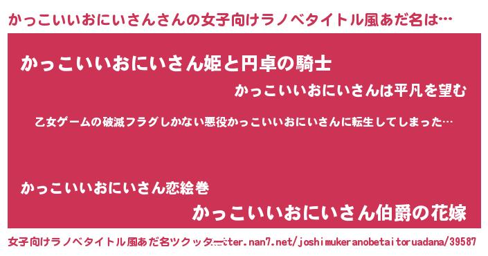 | 胡散臭い通販商品みたいなあだ名 | 『世界中を虜にした世界で10本だけ現存している希少なブランデー…その名も「かっこいいおにいさん」』 |