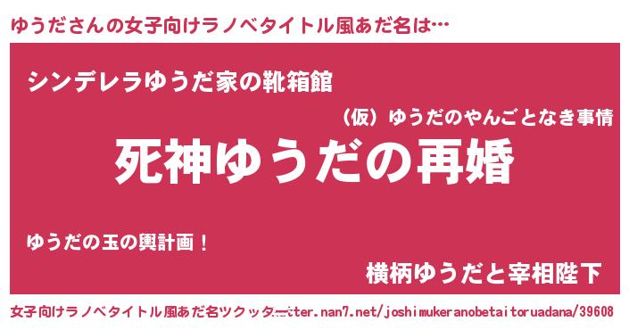 | 男性向けラノベタイトル風あだ名 | 『ノーゲーム・ノーユウダ』 |