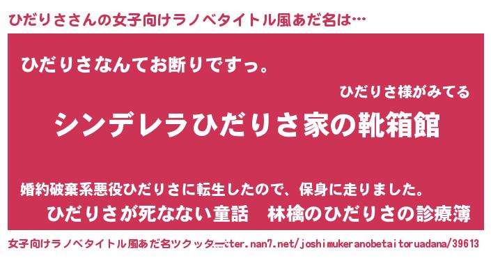 | 胡散臭い通販商品みたいなあだ名 | 『テレビで話題のアガリクス…その名も「ひだりさ」』 |
